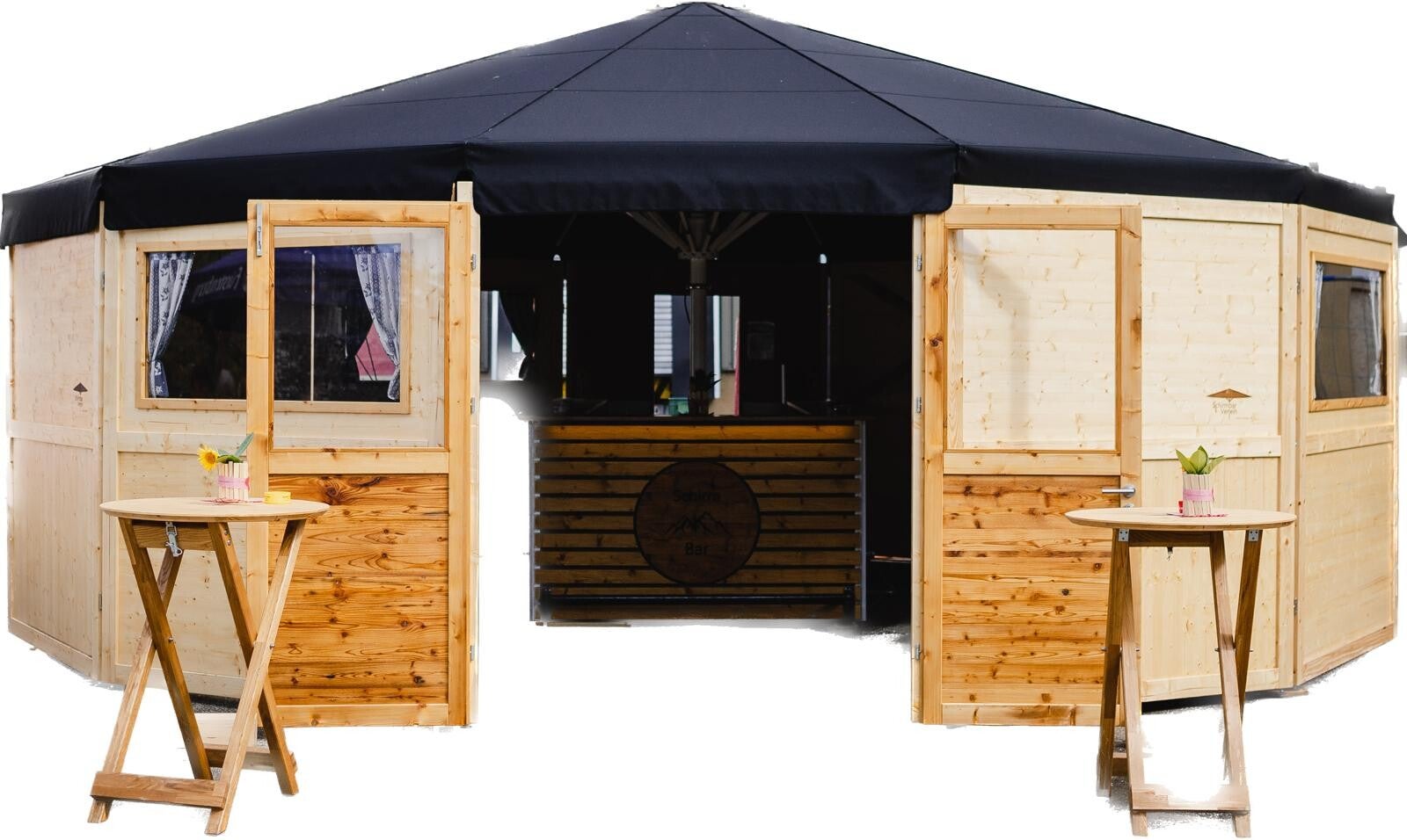 Die Schirmbar hat einen Durchmesser von 8 Meter und hat Platz für bis zu 100 Personen.